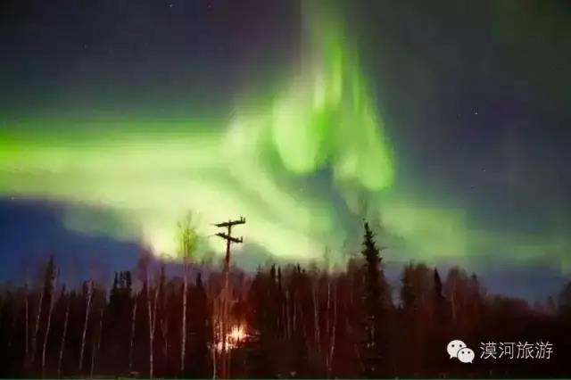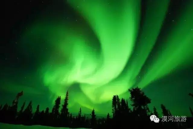在漠河上空的北面,經(jīng)常出現(xiàn)絢麗多彩的北極光奇景。