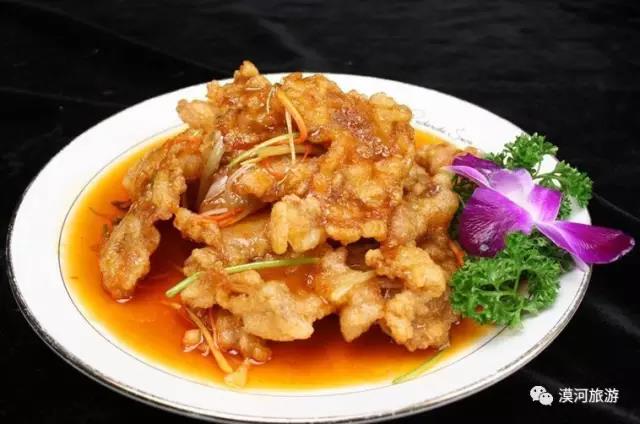 漠河特產(chǎn)珍貴的冷水魚,像鱈魚燉豆腐、烤狗魚、紅燒鰉魚等都非常有名,白肉血腸、漠河人特制的風(fēng)干香腸、油炸糕也非常有地方特色,值得品嘗